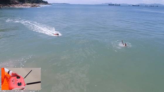 R1救援機(jī)器人在接到落水者后,可以啟用一鍵返航,按原來(lái)的路線自動(dòng)返回。