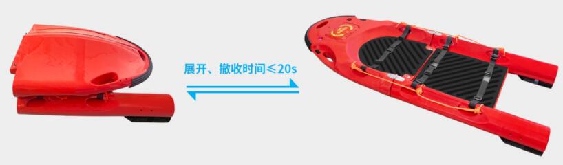 快速折疊:遇到險情,無須充氣,直接展開便可投入救援工作中,以6米/秒的速度抵達事發地點,將落水者安全轉移。擔架設計輕便易折疊,展開、撤收時間≤20秒;確保救援團隊能夠在最短時間內展開行動,為落水者提供及時援助。